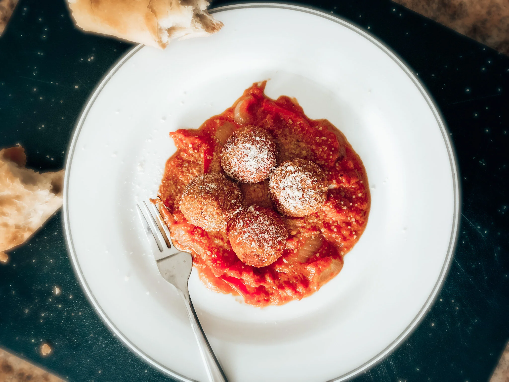 Serve meatballs with sauce and garnish with freshly grated parmesan cheese. Enjoy!
