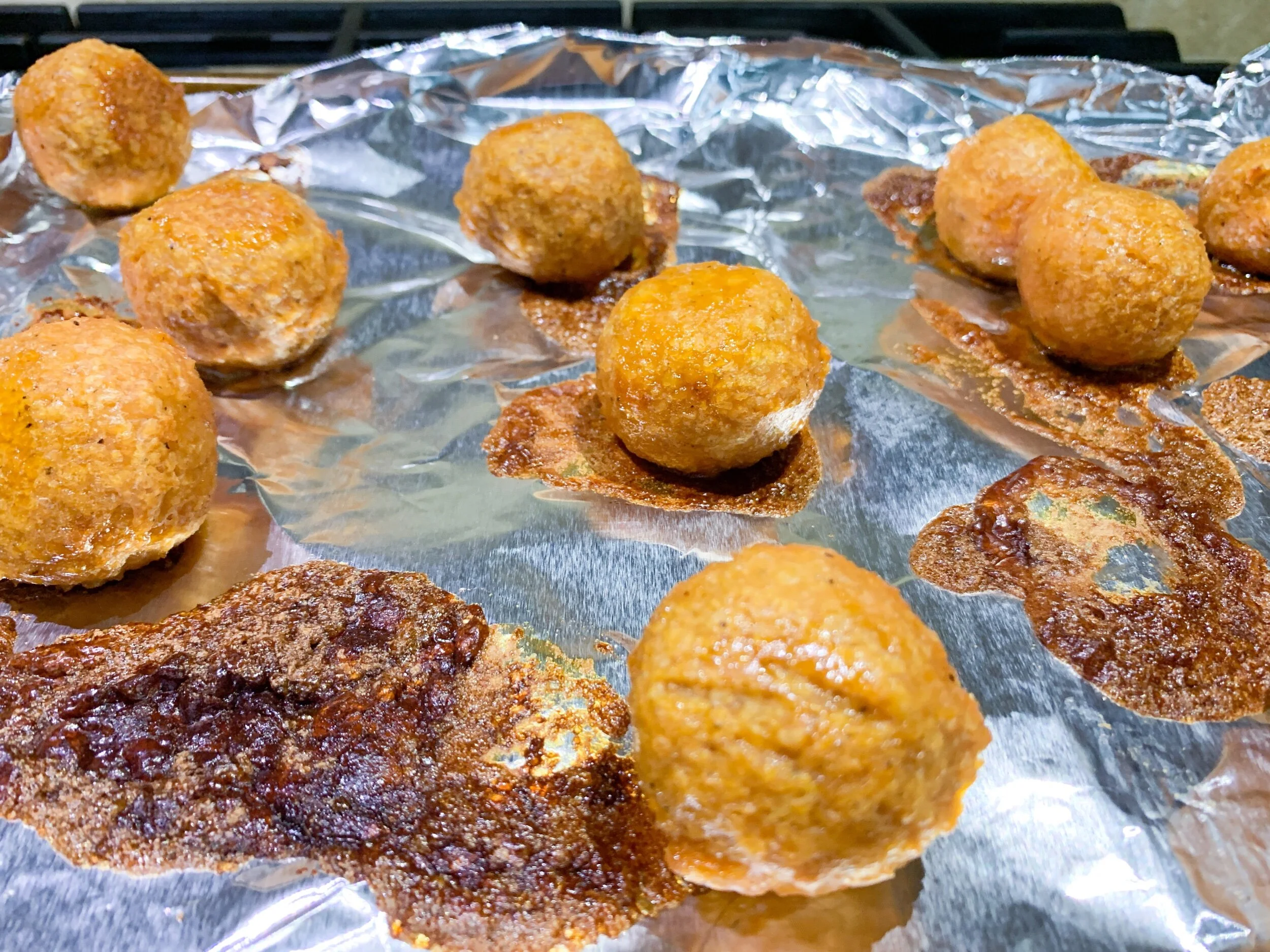 These delicious meatballs are super easy to prepare. Line a baking sheet with tin foil and throw them in the oven. Just like regular meatballs, they are juicy and pack a punch of flavor.